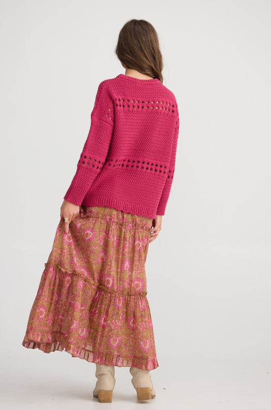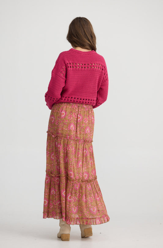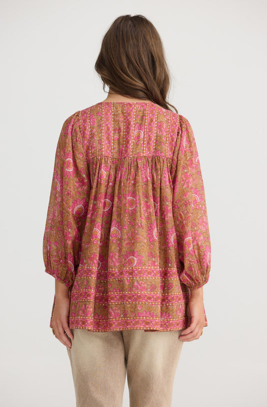 Step into a world where autumn’s crisp embrace meets the free-spirited charm of the seventies. Let Talisman’s Autumn 25 range, Gold Dust Dream, infuse your wardrobe with timeless elegance and eclectic flair. Imagine rich earthy tones, flowing maxi dresses in vintage floral prints and fringed jackets that whisper stories of rock ‘n’ roll. Each piece is designed to capture the essence of a bygone era while embracing modern sophistication, individuality, and freedom.