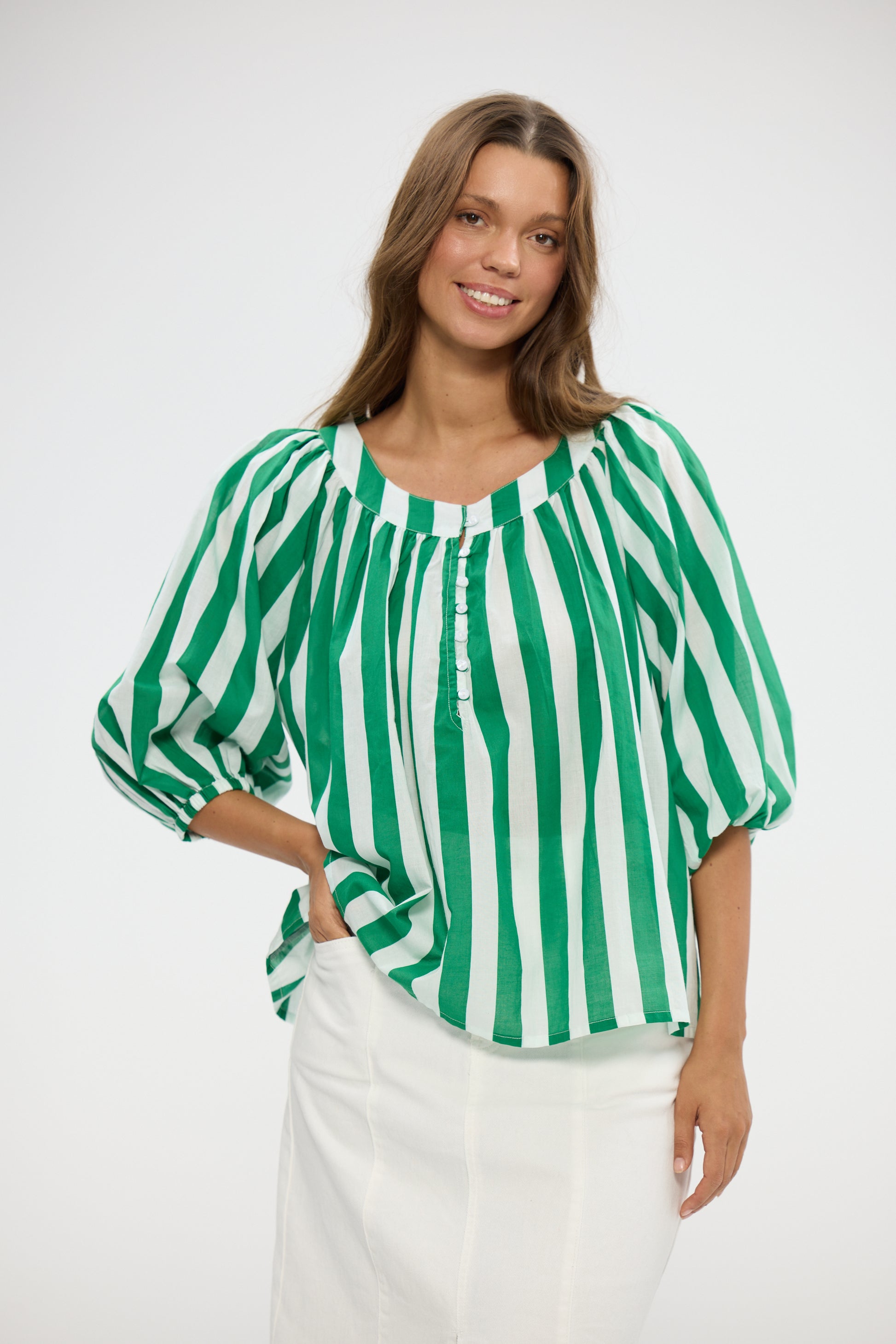 Round gathered neckline